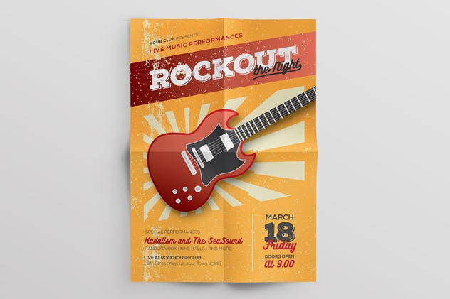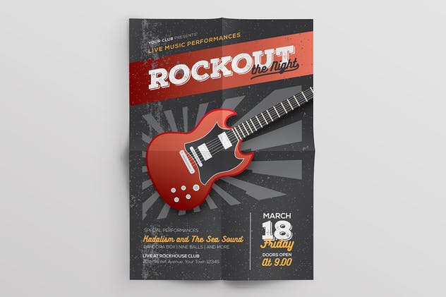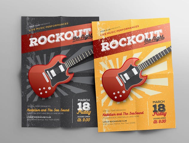 دانلود بروشور و پوستر تبلیغاتی گیتار الکتریک برای فتوشاپ با حجم 17 مگابایت در پرو جی اف ایکس.