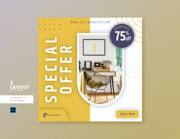 دانلود قالب پست ایسنتاگرام مبلمان منزل برای فتوشاپ با حجم 1 مگابایت در پرو جی اف ایکس.